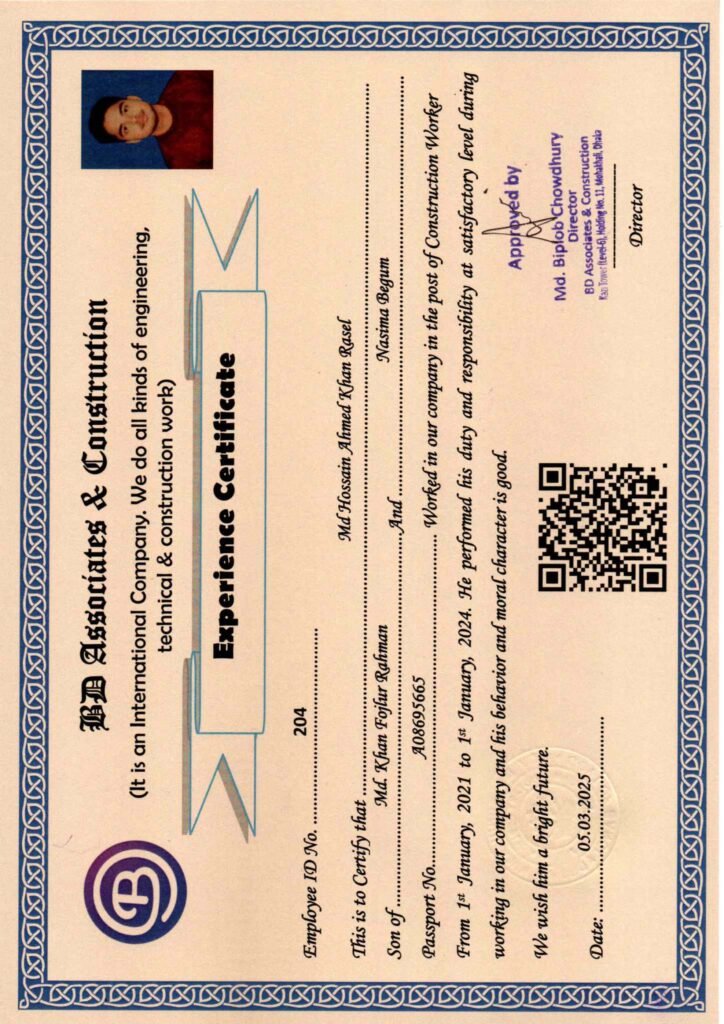 BD Associates & ConstructionIt is an International Company. We do all kinds of engineering, technical & construction work.Kazi Tower (Level-6), Holding No. 11, Mohakhali, Dhaka, Bangladesh. Email: biplophasan3344@gmail.comEmployee ID No. 204