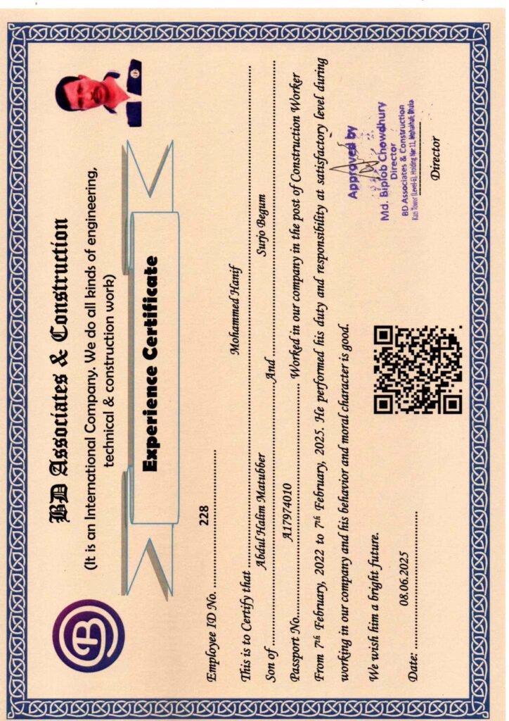 BD Associates & ConstructionIt is an International Company. We do all kinds of engineering, technical & construction work.Kazi Tower (Level-6), Holding No. 11, Mohakhali, Dhaka, Bangladesh. Email: biplophasan3344@gmail.comEmployee ID No. 228